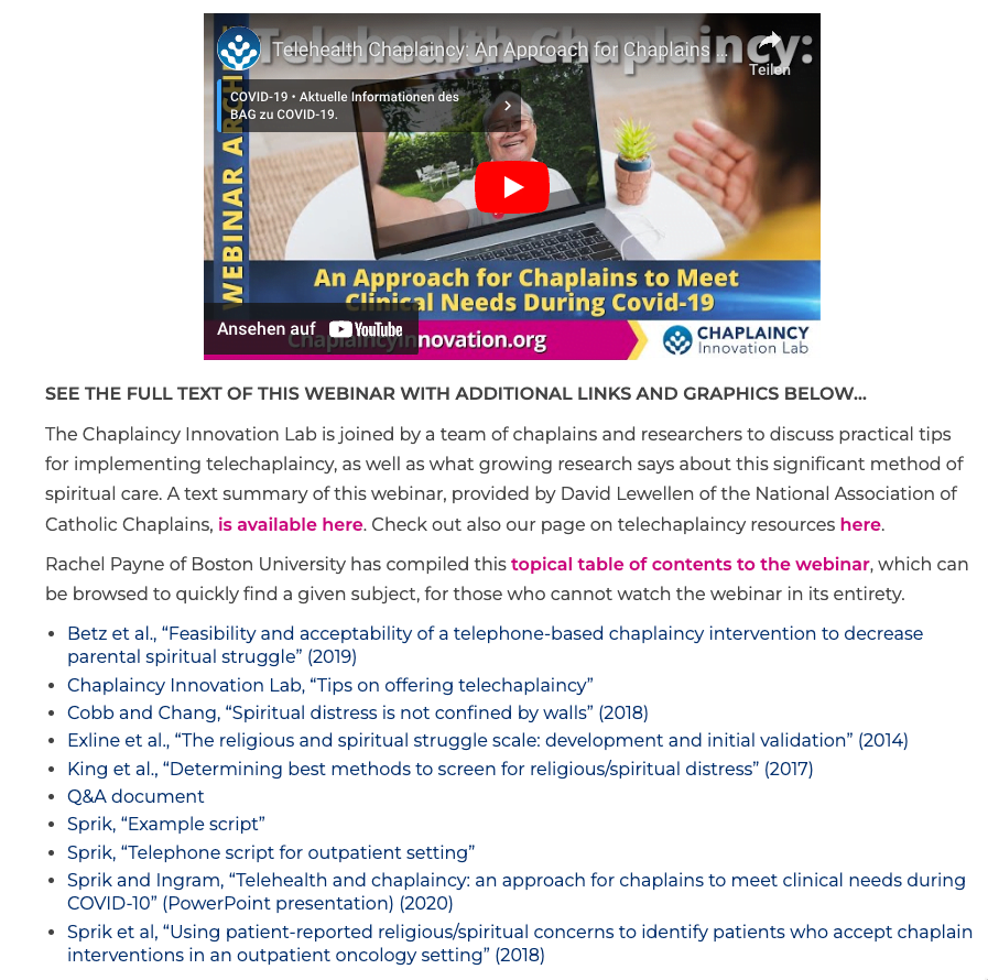 The Chaplaincy Innovation Lab is joined by a team of chaplains and researchers to discuss practical tips for implementing telechaplaincy, as well as what growing research says about this significant method of spiritual care.