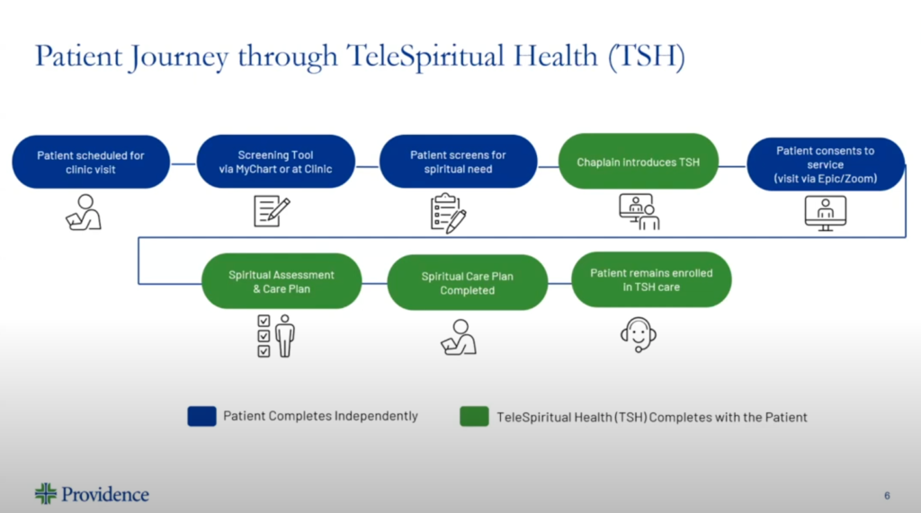 Charlie Shin and Deborah Thompson shared how Providence patients, as in many health systems, experience gaps in access to spiritual health services across the continuum of care. The TeleSpiritual Health (TSH) pilot launched on December 4, 2023, to extend chaplain support to patients seen at the Providence Heart Institute of Oregon. Charlie and Deborah introduced TeleSpiritual Health and shared learnings since the launch.