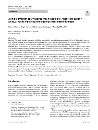 A single-arm pilot of MyInspiration: a novel digital resource to support spiritual needs of patients undergoing cancer-directed surgery