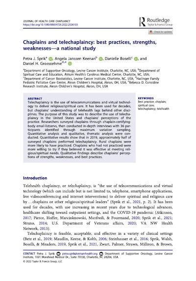 Chaplains and telechaplaincy: best practices, strengths, weaknesses—a national study